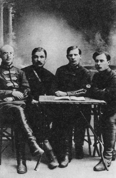 Члены партийной комиссии 2-й Червонно-Казачьей дивизии. Симкин, Аремаев, Васильев, Подзюмский (слева направо)
