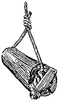 Чаще конструкция состояла из двух кусков дерева, соединенных между собой кожаными ремнями или сухожилиями животных (рис. 17). Но такой однорогий якорь, даже утяжеленный камнями, иногда ложился на грунт плашмя и не держал. Поэтому в древности на судах пришлось учредить должность «якорного ныряльщика». В момент, когда судно под действием ветра или течения начинало дрейфовать, пловец прыгал за борт и, увлекаемый весом крюка, опускался на грунт. Здесь ему надлежало направить якорь рогом в грунт. При натяжении каната рог зарывался. После этого пловец выныривал на поверхность и взбирался на корабль. Держащая сила таких якорей оказалась значительно выше, чем у якорных камней и крестовин, утяжеленных камнями.