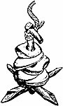 На рис. 22 изображен древний якорь, найденный в Японии. В середине деревянного веретена в плоскости, перпендикулярной плоскости рога, прикреплены два тонких стержня, удерживающих два голыша. Их назначение — направить рог якоря вниз, чтобы он зарылся в грунт. Длина этого якоря, который сейчас хранится в музее рыболовства в Осако, 70 см, диаметр камней 18 при толщине около 7 см.