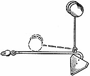 Поскольку ныряльщик мог ставить якоря-крюки только на небольших глубинах, мореходы попытались придать якорю такую форму, чтобы он под действием силы тяги каната сам неизбежно принимал такое положение, когда конец одного из рогов оказывался бы точкой опоры. У деревянного двойного крюка сделали перекладину, обеспечивавшую поворот якоря на рог при появлении тяги каната (рис. 18).