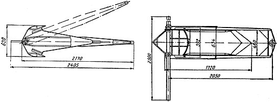 В 1965 году краткое описание и чертежи двухкилограммового якоря Горбунова опубликовал журнал «Техника молодежи». Редакция журнала и автор изобретения получили сотни писем от читателей. Конструкция якоря заинтересовала не только владельцев малых судов, но и строительные организации, в частности Всесоюзный научно-исследовательский институт землеройного машиностроения, который в это время работал над проектом крупного землесоса для строительства Каракумского канала. Проект предусматривал оснащение землесоса стрелами для перекладки папильонажных якорей. Применение таких стрел позволяет в стесненных условиях канала обходиться без мотозавозни и не затаскивать якоря вручную на откосы канала. Вот тут-то проектировщики и поняли преимущество якоря Горбунова. Ведь прочность и вес проектируемых стрел целиком зивисят от веса применяемых якорей, и если оснастить землесос традиционными однопалыми якорями, то грузоподъемность стрел необходимо увеличить в 3–4 раза. Изготовили якорь Горбунова весом 220 кг, (рис. 162). На рыхлом песке его держащая сила составила 38,5 веса (8,5 г), а на суглинке — более 45 весов (более 10 т). При изменении угла тяги в горизонтальной плоскости на 30° якорь, не выходя из грунта, говорачивался в сторону тяги, сохраняя устойчивую держащую силу.