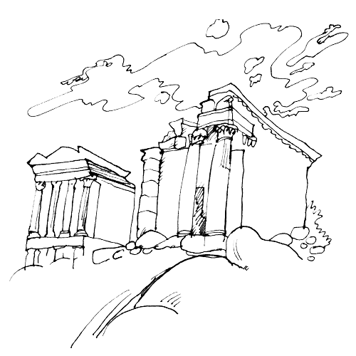 Но все-таки, Бог знает как, сразу видишь, что он помнит о городе внизу, о его имперском размахе, и догадываешься, что его «прихожане» (еще не ведавшие этого понятия) были детьми этой властной традиции и не приняли бы бедного храма и не позволили бы только что узнанному ими Спасителю уступить Артемидам и Аполлонам в красоте и мощи парадного облика.