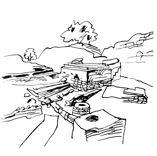 Нимфеум глядел на пустую агору высокими арками в раковинах сводов и тосковал по статуям, которые в этих арках встречали человека, подчеркивая белизной голубизну порфировых колонн. Эти порфиры перекликаются с колоннами греческого источника, предтечи византийских агиасм. Он бежит здесь из своей давней-давней эры, напоминая, что время придумано человеком и властно только над ним, не касаясь вод, небес, гор и вот таких источников, которые всегда текут, будто в первые дни. И только напоследок мы поднялись в театр, где опять расписалось землетрясение. Он оказался настолько неожиданным зов для нас, видевших за эти дни не по одному театру в день, засыпанным снегом, застенчивым и не понимающим, как носить на себе такую белую роскошь, и потому выглядел ненастоящим.