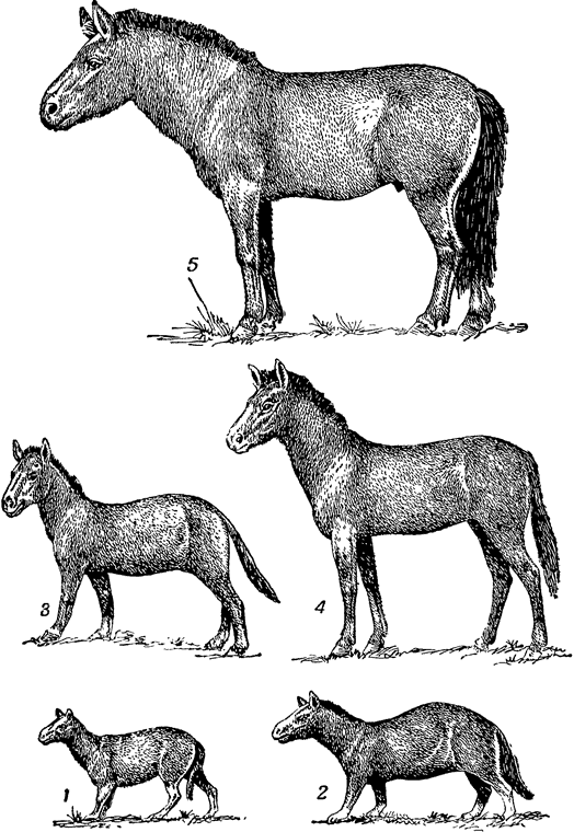 Здесь желание человека, «воля заводчика», как выражался Дарвин, имеет определяющее значение. Борзая со своими длинными, как ходули, ногами и такса на низеньких кривых ножках, обе эти породы — потомки абиссинского волка, прирученного человеком в ранние исторические времена в северо-восточной Африке. Отбор велся в этом случае людьми в двух, во многом противоположных, направлениях. В первом случае создавалась охотничья порода быстро бегающих собак, способных догнать антилопу или зайца, во втором — коротконогая собака, способная, однако, к разрыванию лисьих нор.