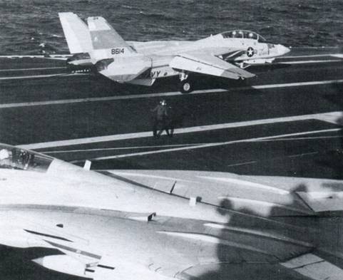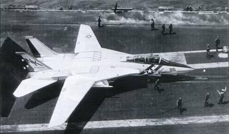 Первый серийный F-14А (№ 158614) совершил посадку на авианосец «Форрестол». 1972 г.