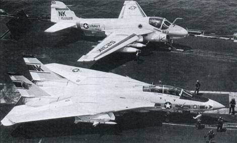 — на тринадцатом (№ 158612) исследовали электромагнитную совместимость систем самолета. Специально для этих испытаний в Кэлвертоне была построена безэховая камера размерами 26.5x26,5x12,8 м и стоимостью 3,5 млн. долларов (единственная на тот момент в западном мире). Американцы очень боялись, что «мирные советские траулеры», регулярно бороздившие Атлантику вдоль границ США, смогут отсканировать частоты работы СУО и другой бортовой электроники. На этом самолете в июне 1972 г. также отрабатывали базирование на авианосце;
