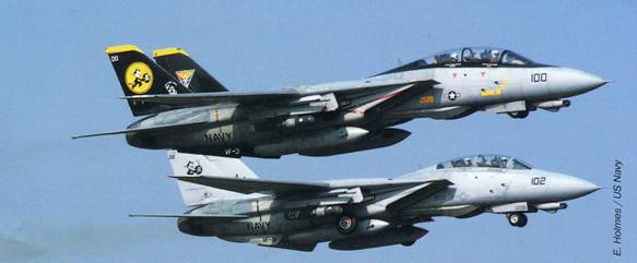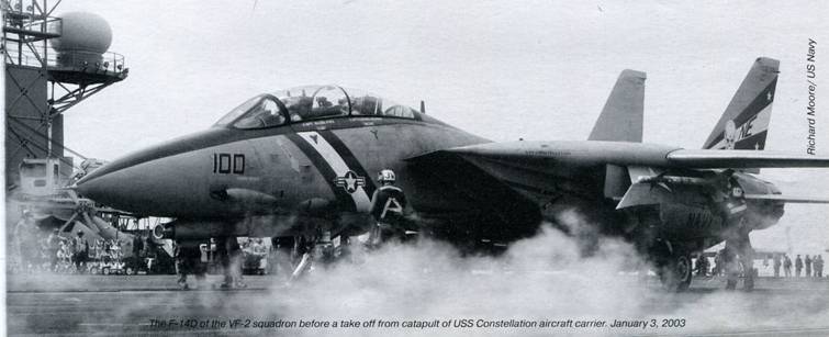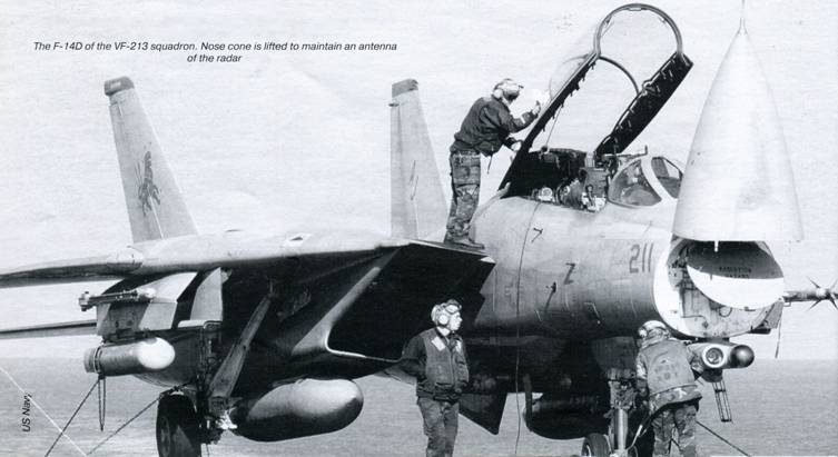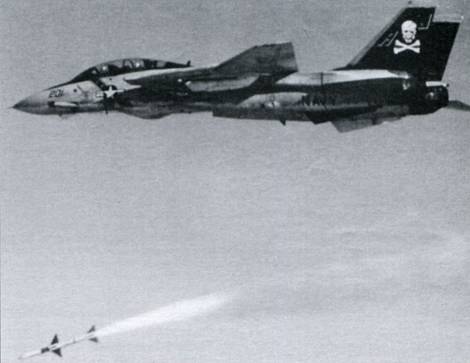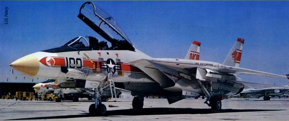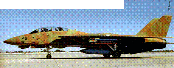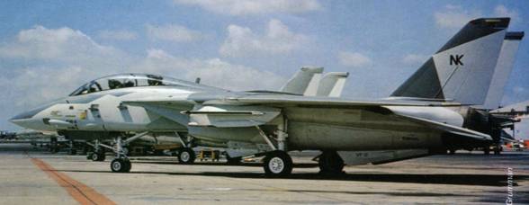 Вооружение самолета. Артиллерийское вооружение самолета — встроенная шестиствольная пушка М61А1 Vulcan калибром 20 мм. Скорострельность пушки — до 6 6000 выстрелов/мин, боекомплект — 675 снарядов. Подвесное вооружение общей массой до 6500 кг размещается на 8 узлах. Самолет может нести управляемые ракеты «воздух-воздух»: до 6 ракет большой дальности AIM-54 Phoenix, до 4 ракет средней дальности AIM-7 sparrow и до 4 ракет малой дальности AIM-9 Sidewinder в различных комбинациях. Для действия по наземных целям предусмотрена подвеска свободнопадающих бомб Мк82 калибром 500 фунтов (226,8 кг), Мк83 кал бром 1000 фунтов и Мк84 калибром 2000 фунтов, а также НАР Zuni калибром 127 мм.