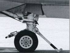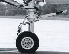 Шасси самолета включает двухколесную переднюю и две одноколесные основные опоры. Опоры убираются против полета, при этом колеса основных опор поворачиваются на 90°. Стойки всех опор — телескопического типа, все колеса снабжены дисковыми тормозами и антиюзовыми устройствами. Амортизаторы основных стоек — двухкамерные жидкостно-газовые, обеспечивают безаварийную посадку с вертикальной перегрузкой до +6,5д. Амортизатор передней стойки — однокамерный жидкостно-газовый. Эта стойка оборудована кронштейном крепления к каретке паровой катапульты и механизмом вздыбливания. Передняя опора управляемая — электрогидравлический механизм обеспечивает поворот колес на угол ±70°. Этот же механизм является демпфером шимми. Размер основных колес — 939x292 мм, передних — 559x168 мм, давление в их пневматиках при наземном базировании — 17,23 и 7,38 кг/см², соответственно. При корабельном базировании давление в пневматиках всех колес — 24,61 кг/см².