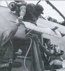 Мы были на удалении в полмили от полосы и на высоте в 25 футов (7,5 м. — Автор) над верхушками деревьев… Катапультирование заняло 0,9 с, а спустя 0,4 с передние колеса коснулись верхушек деревьев».