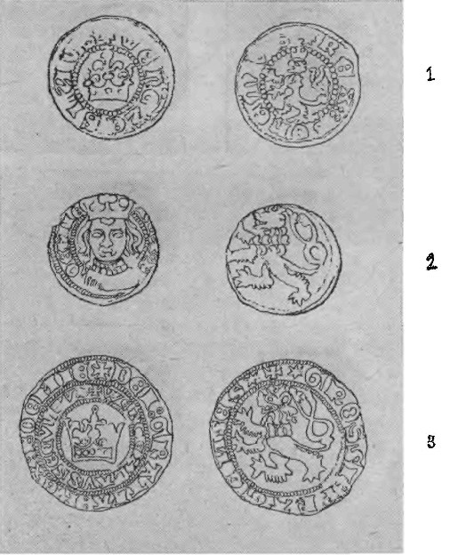 В некоторых местах Чехии (в особенности у границ с Австрией и Баварией) существовал счёт на марки; одна марка равнялась 64 грошам. Мелкой разменной монетой служили денары и галержи. Обычно грош делился на 6 или 7 денаров, а денар — ещё на 2 геллержа. 30 денаров носили особое название — солид. 8 солидов составляли особую счётную единицу — лиору, или талант, равнявшийся, таким образом, 240 денарам. В XIV веке в Чехии чеканилась, но в очень незначительных количествах, и золотая монета, имевшая очень малое распространение. Такая пестрота в денежном обращении выражала характерные особенности социально-экономического развития средневековой Чехии.