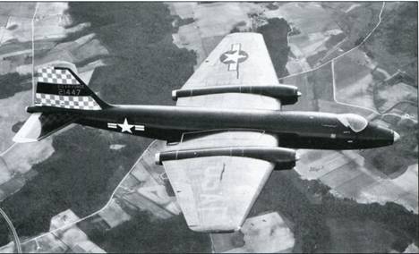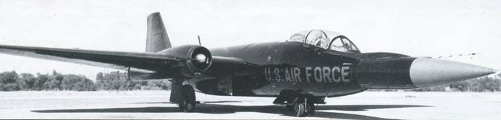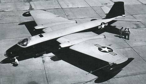 Поэтому к английской «Канберре» 1* американцы начали присматриваться практически сразу после ее появления. Первое знакомство с новым самолетом состоялось на авиасалоне в Фарнборо в 1949 г. В августе следующего года Великобританию посетила представительная делегация ВВС США, которой в исследовательском центре RAF Воском Даун был продемонстрирован четвертый опытный образец бомбардировщика (VN850).
