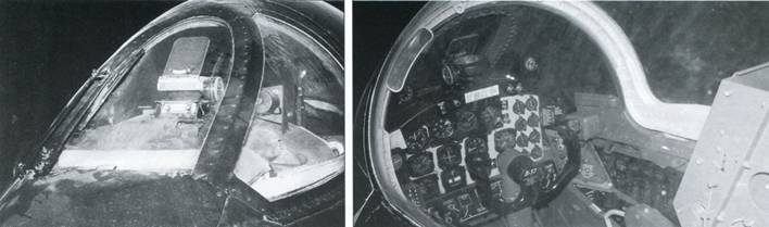 Козырек фонаря кабины экипажа и рабочее место летчика самолета В-57В