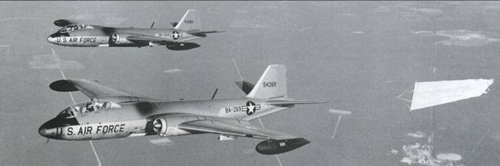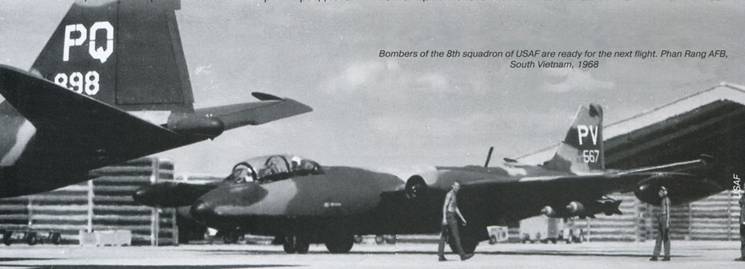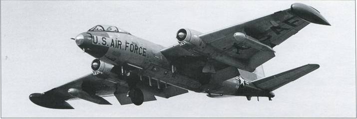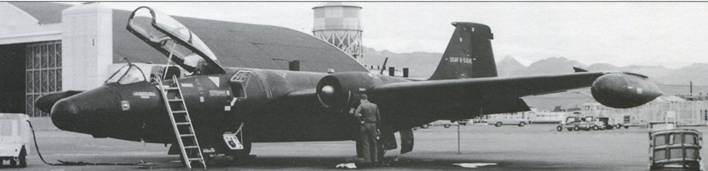– кабина стала двухместной (от бомбардира американцы отказались сразу) и была существенно модернизирована в соответствии с требованиями USAF, включая использование нового приборного оборудования. Эргономика кабины «Канберры» осталась на уровне самолетов Второй мировой войны и, мягко говоря, оставляла желать лучшего. Американцы, ставившие комфорт экипажа во главу угла, не стали с этим мириться. Нагромождение ручек и переключателей уступило место рациональной компоновке, внутренние поверхности приобрели спокойную светлую окраску, изменилось освещение. Но главное – появилась система кондиционирования, чему британские экипажи могли только позавидовать;