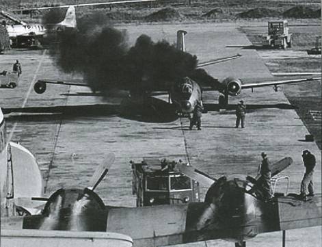 В декабре 1955 г. в Шпангдалеме во время захода на посадку упала очередная «Канберра». Общая ситуация с аварийностью новой техники дважды в течение 1956 г. приковывала самолеты к земле: с 29 января по 20 февраля и с 24 мая по 24 июля. Что, несомненно, увеличивало нагрузку на другие разведывательные подразделения USAF в Европе.