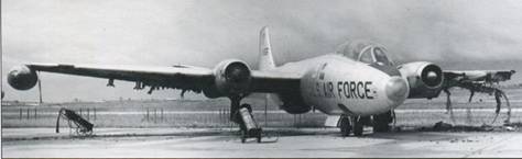 Довольно долго эскадрильи одновременно эксплуатировали RB-57 и поршневые RB-26. Достичь приемлемой операционной готовности долгое время не удавалось из-за эксплуатационных ограничений по скорости и практическому потолку, а также периодических приостановок летной эксплуатации после нередких летных происшествий. Так, 17 мая 1955 г. в 1-й эскадрилье разбился самолет при заходе для показательного прохода над полосой. Экипаж погиб. Причина -та же, что и на английских «Канберрах»: потеря продольной управляемости из-за дефекта в системе управления переставным стабилизатором.