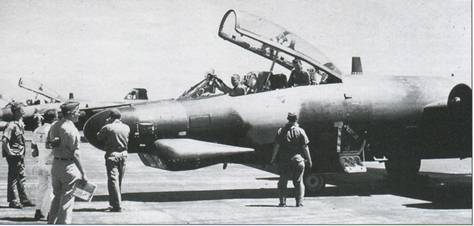 24 октября 1954 г. RB-57A прибыли в Шпангдалем, и уже на следующий день были торжественно продемонстрированы личному составу и их семьям. 30 ноября первый RB-57 получила 30-я эскадрилья. Пилоты готовились к переходу на новую технику, выполняя тренировочные полеты на учебном Т-33, на котором требовалось самостоятельно налетать 20 ч. Наземный персонал изучал матчасть в развернутых на базах мобильных учебных центрах.