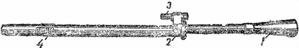 Регулятор (рис. 4) служит для регулирования подачи пороховых газов к поршню. Он вставлен сзади в канал газовой каморы и закреплен