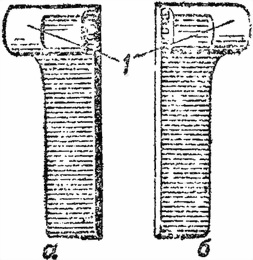 щитиком. По бокам в передней и задней части ствольной коробки — отверстия: передние — для замыкателя ствола (рис. 8), задние — для соединительного винта приклада (рис. 9). Снизу в передней части ствольная коробка имеет два