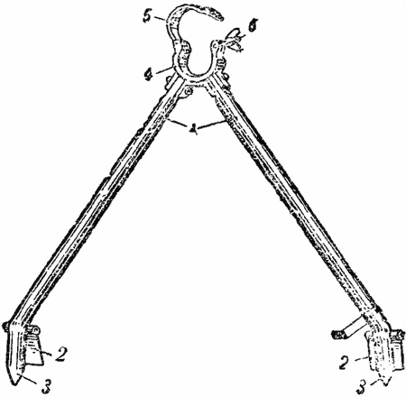 4 — крючки для закругленных выступов спусковой рамы;