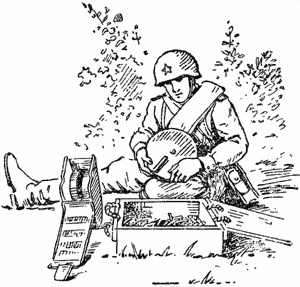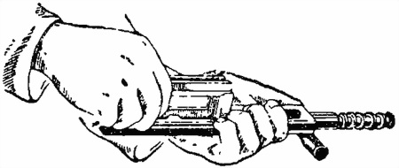 б) правой рукой свести рукоятки прибора и освободить их; при этом против окна приёмника магазина станет очередное патронное гнездо магазина;