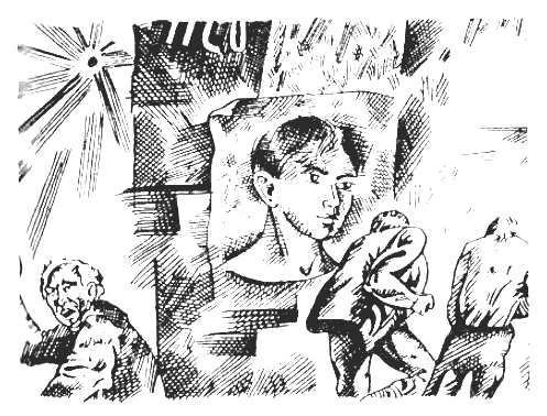 Он проснулся, когда беленый потолок и стены были исчерчены яркими солнечными полосами, пробившимися сквозь щели между наличником окна и занавеской. Володя сразу же вспомнил, что случилось с ним вчера, но чей-то негромкий кашель не позволил ему погрузиться в ужасные воспоминания. Володя приподнялся на постели, чтобы узнать, кто кашляет, и увидел Леньку Кошмарика