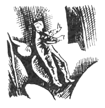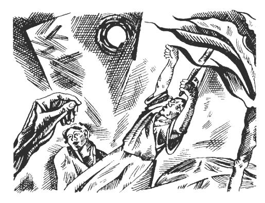Но наслаждался Володя недолго — он вдруг ясно вспомнил, что видел нечто подобное в своем кошмарном сне! Да, именно так выглядело место, где за ним гнался Каракалла. Ужас охватил Володю. Какое-то предчувствие заставило его обернуться, и тут его плечо уперлось во что-то теплое и живое. Несомненно, это была грудь мужчины, лица которого он не видел. Володе стало по-настоящему жутко. Мальчик открыл было рот, чтобы крикнуть, но нос и рот ему зажала жесткая ладонь, а вторая рука страшного незнакомца схватила его за горло.
