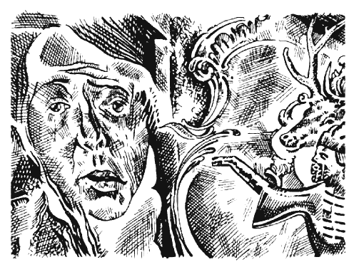 Володя смотрел на Кошмарика, напялившего на себя все, что только может найти записной алисоман, не просто с удовольствием, а с восхищенным умилением. Смотрел молча — только улыбался. Но улыбка вдруг исчезла с лица Володи — он вспомнил все, что случилось с ним вчера. Кошмарик, казалось, понял, почему загрустил друг, присел к нему на кровать и с сочувствием сказал: