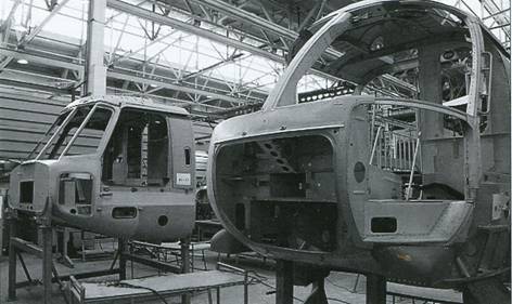 Кабины экипажей Ка-27 и Ка-29 (на заднем плане) в цехе агрегатной сборки Кумертауского АПП