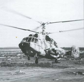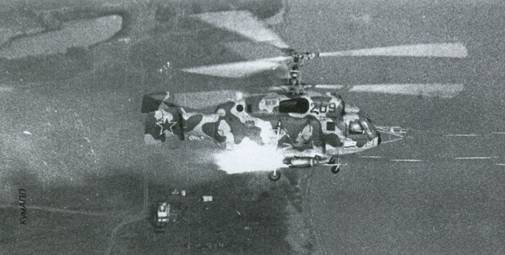Второй прототип Ка-29 во время отработки применения блоков НАР УБ-32 на полигоне в Крыму