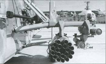 30-мм пушка 2А42, блок НАР Б8В20 и два контейнера ПТУР «Штурм» (вверху). Пусковая для подвески ПТУР «Штурм»