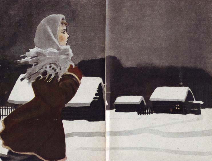 А Нюрка должна вставать рано. Дым подняться не может, а ей надо подниматься и, наскоро умывшись и перекусив чего-нибудь, бежать по узенькой снежной тропке на самую далекую окраину деревни, на свиноферму.