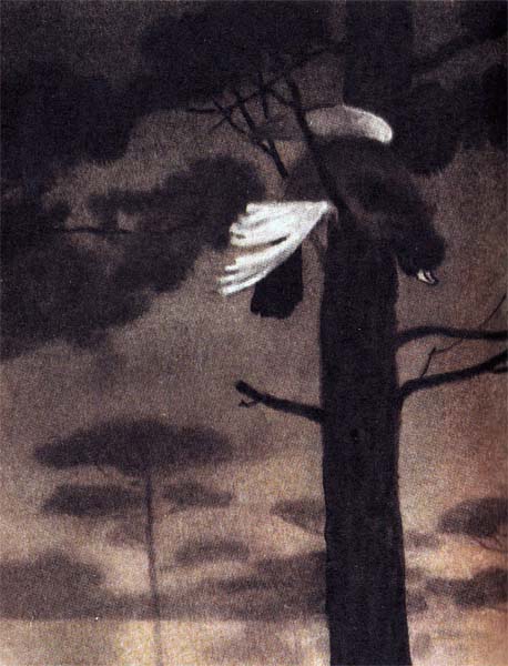 Когда третья сосна вот-вот должна была упасть, пришел дружок. На плече он тащил ношу птиц.