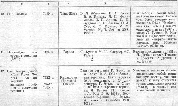 Сначала я хотел возможно подробнее описать первые три категории вершин, но вскоре оказалось, что такое собрание всех известных в настоящее время семитысячников никак не вмещается в рамки этой книги. Поэтому я ограничился составлением списков покоренных семитысячников, а также попыток восхождений на вершины выше 7000 м, постаравшись сделать эти списки по возможности ясными и исчерпывающими