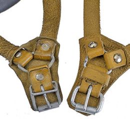 Защита от узлов крепления (подбой) ГДР сделана из мягкой лайковой кожи, отечественная – из такой же, как и все ремешки. ГДР-овская пряжка крепится к подбою с помощью прорезной пятки, отечественная – прошивкой х/б нитью.
