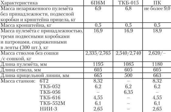 Основные ТТХ пулемётов