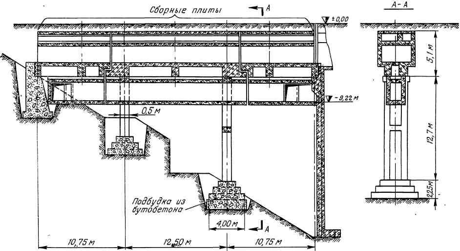 В своей дальнейшей проектной и строительной практике я не раз убеждался, что сооружения даже при большем объеме работ, но с меньшим заглублением (особенно на водоносных грунтах) оказываются экономичнее и производственно проще. Это определяется прежде всего не объемом бетонных работ, а большой трудоемкостью сооружения заглубленного зуба с неизбежным применением стальных шпунтов, креплений и обычно сложного водоотлива.