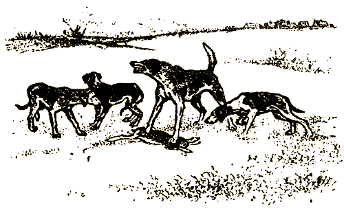 Русак бежал быстро, но далеко не так легко, как утром, он явно устал. И что это? Навстречу из кустов показались наши гончие, вся тройка. Миг — и собаки звездой накрыли замотанного зайца.