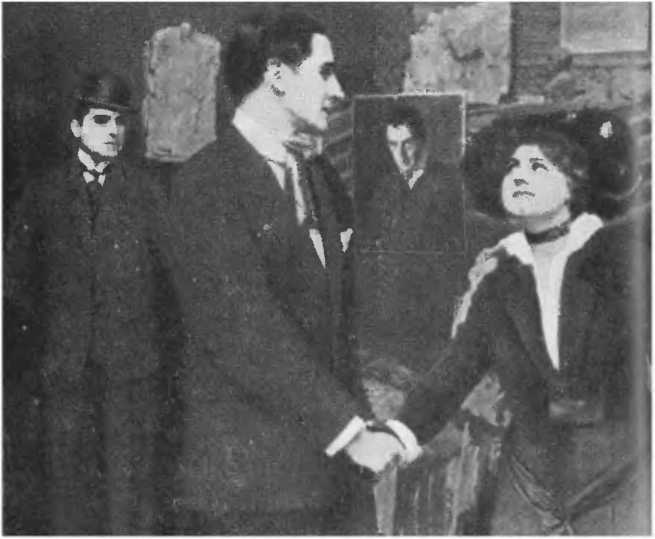 Американская постановка около 1912 года. Студия «Байограф» в Нью-Йорке. Обращает на себя внимание скудость декораций и освещения. Слева — ртутные лампы Купера-Хьюитта.