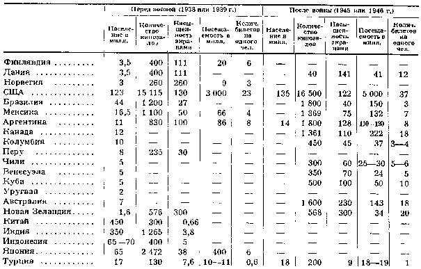 В 1946 г. население 18 миллионов, более 200 кинотеатров, насыщенность экранами около 9, посещаемость 18–19 миллионов (один билет на одного жителя).