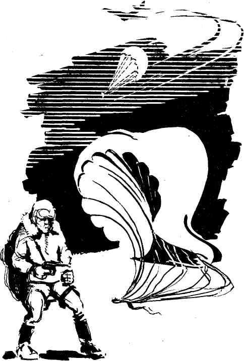 [16], поэтому приходилось ложиться на лед и пережидать, пока в небе не погаснет предательски яркая вспышка. Невдалеке с сухим шелестом пролетали мины.
