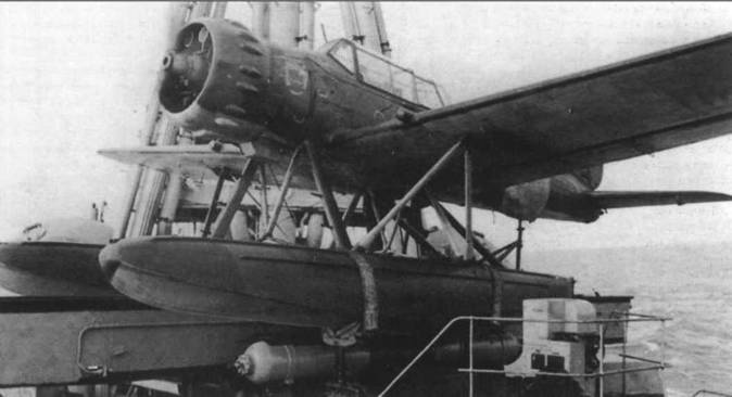 «Лейпциг» на обеспечении минных постановок в Северном море, декабрь 1939 г. 13 декабря 1939 г. крейсер был поврежден торпедами, выпущенными британской подводной лодкой «Сэлмоун». После ремонта корабль в 1940 г. плавал на Балтике. На катапульте установлен гидросамолет Хейнкель Не-6 °C.