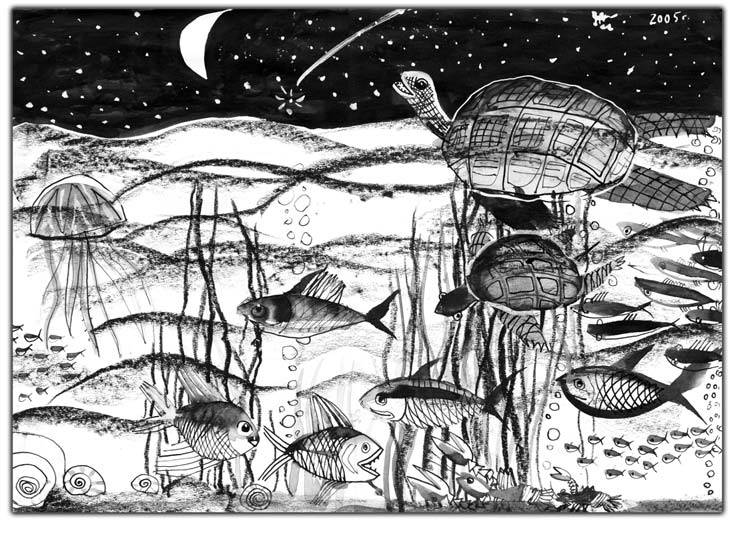 Мой мальчик был ещё маленький. Я снимала для него дачу в Подмосковье. Вечером, после работы, я ехала к мальчику. Электричка медленно отползала от города. За окошком тянулись привокзальные сооружения, унылые светло–жёлтые заборы, покрытые несуразными письменами. Тогда, в конце 80–х, появились в продаже баллончики с жидкой краской, и подростки разрисовывали ею все доступные поверхности. Линии были жирные, края их расползались неровно.