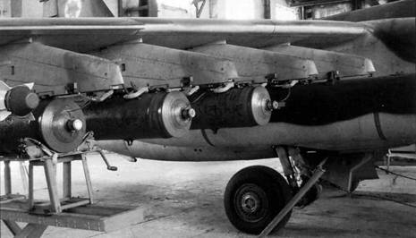 Вооружение. Нормальная бомбовая нагрузка — 1500 кг, максимальная — 5360 кг. В бомбоотсеке возможна подвеска двух бомб калибром до 500 кг. Для внешней подвески бомб используются четыре подкрыльевых бомбодержателя — два на центроплане (под внешними мотогондолами) и два на консолях. На центропланные бомбодержатели возможна подвеска бомб калибром до 1000 кг, на консольные — до 1400 кг. При бомбометании используется прицел Lotfe 7, установленный снизу носового отсека подфюзеляжной гондолы в специальном обтекателе. Бомбосбрасыватели электрические.