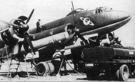 Топливо размещается в 11 фибровых протектированных баках общей емкостью 5860 л. Запас топлива может быть увеличен до 8060 л путем установки в фюзеляже двух дополнительных баков. Топливная система предусматривает питание двигателей двумя сортами топлива: взлет производится на топливе с октановым числом 100, крейсерский полет — на топливе с октановым числом 87. Высокооктановым топливом заправляются четыре крайних центропланных бака емкостью по 260 л — так называемые «взлетные» баки. Каждый двигатель питается от своего «взлетного» и «путевого» центропланного бака. В средней части фюзеляжа перед топливными баками по правому борту находится пульт управления фюзеляжными баками. С этого пульта бортмеханик может направлять горючее во все двигатели одновременно либо в два левых или правых двигателя раздельно, причем как из всех баков, так и из каждого в отдельности. Заправка самолета топливом и маслом производится через заливные горловины каждого из баков.