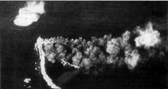 «Боевой курс!» — раздался в наушниках голос Флигеля. Головной самолет выполнил разворот влево, остальные машины повторили его маневр. Расстояние, отделяющее бомбардировщики от цели, начало быстро сокращаться. Вокруг «Кондоров» появились коричневые облачка — разрывы зенитных снарядов.