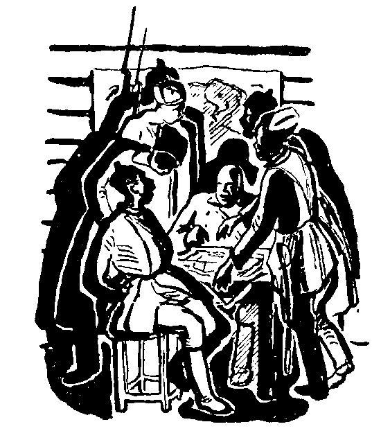…Моторный пришел в сознание в госпитале, в большой палате, где на выстроенных рядами кроватях лежали больные красноармейцы. Он не мог произнести ни одного понятного слова. Его речь раздробилась на множество глухих, отдельных, не связанных между собой звуков. Тело вздрагивало и тряслось несмотря на всю силу воли, которую он употреблял, чтобы приостановить эту пляску. Победа (он знал, что Врангель разбит и ни одной белой армии не осталось на Советской земле) омрачалась мучительным состоянием, которое переживало его тело. Торжество над врагом было в то же время единственной его радостью, которую он остро чувствовал. Другие известия не доходили до него. Ему прописали абсолютный покой.