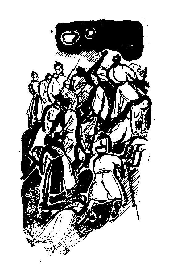 …Иван Моторный, фланговый в первом ряду, шагал устало и беспокойно. Он, собственно, не так устал, как был голоден. Вчера с отрядом они кое-как пообедали, нагнав походную кухню. Но сегодня целый день шли с пустыми желудками, в которых застряли жалкие крохи хлеба. Выправка у Моторного скорей медвежья, чем военная. Он двигается несколько вразвалку, шаги делает просторные и крупные. Наука войны ему столь же мало знакома, как и многим из отряда. Их всех наспех мобилизовали с шахт и заводов на последний бой с врагом. Незнакомство с военным делом возмещалось в значительной мере той зарядкой гнева, который они несли под легкими своими одеждами, как остро отточенную сталь.