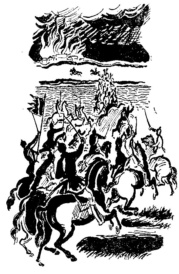 Он знает, что враг так или иначе должен быть уничтожен. Хочет спросить, каковы признаки надвигающейся воды? Крестьяне машут рукой ка восток. Ветер оттуда пригоняет половодье.