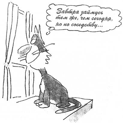 конечно, не надейтесь, что вам поможет хозяин. Люди твердят, будто им нравится наш независимый нрав, а сами заставляют нас ходить по струнке. Поставят миску — изволь есть, погладят — урчи. Если на них нападает охота ласкаться — берут на колени, надоест — спихивают. Немудрено, что мы в конце концов теряем уважение к себе: «Я ведь просто-напросто кот».