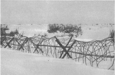 Проволочное заграждение, установленное гитлеровцами на льду реки Ловать